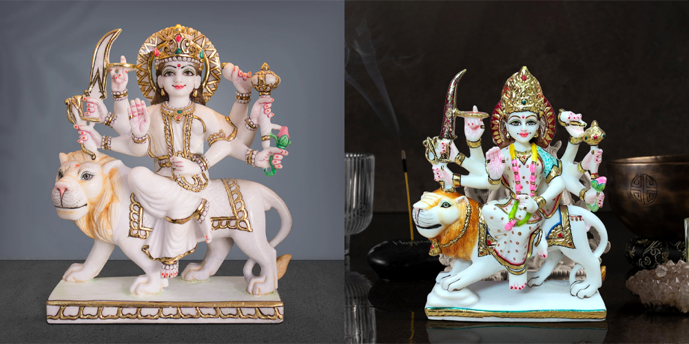 Each Durga Mata murti we create is handcrafted by skilled artisans who pay great attention to detail, ensuring that every feature, ornament, and expression is perfectly sculpted. Using the finest quality marble, our idols are designed not only to be visually captivating but also durable and long-lasting.